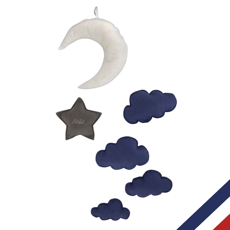 MOBILE LUNE, ÉTOILE ET NUAGES PERSONNALISABLE