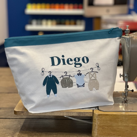 La maxi trousse de Melocotone a été créée à la demande de l’une de vous ! En effet, notre cliente souhaitez une trousse très très grande pour un cadeau de naissance afin que la maman puisse y mettre tout ce dont elle pourrai avoir besoin pour son bébé. Nous l’avons déclinée avec notre Dressing et vous pouvez la personnaliser avec le texte de votre choix qui se situera au-dessus du dressing.